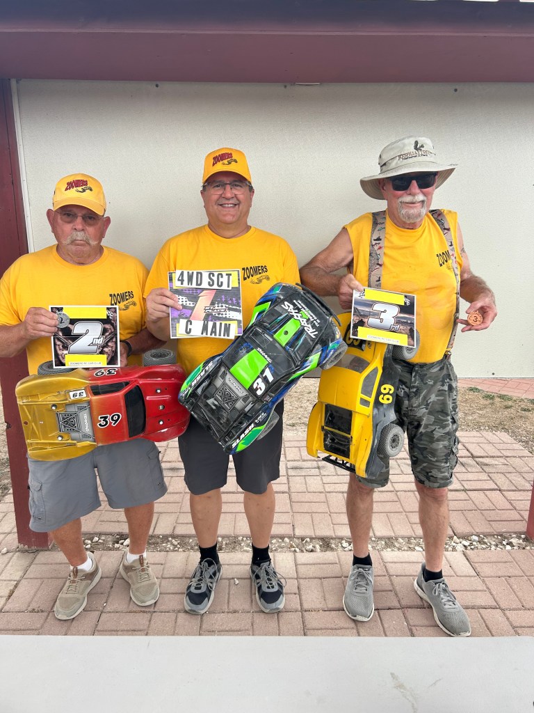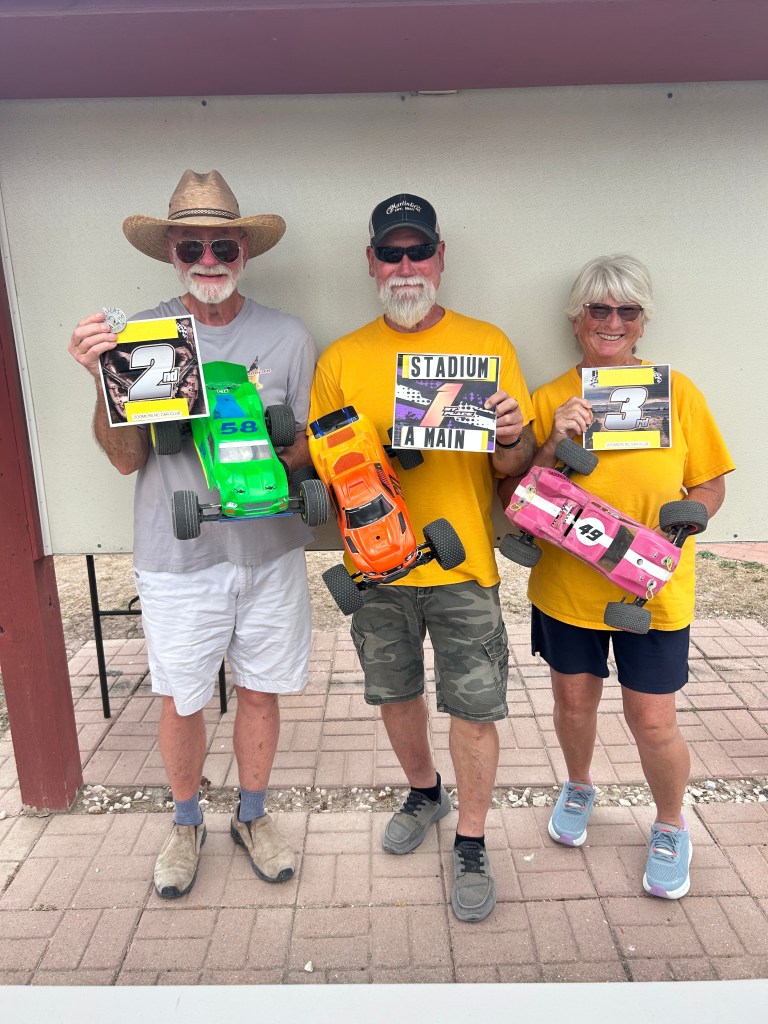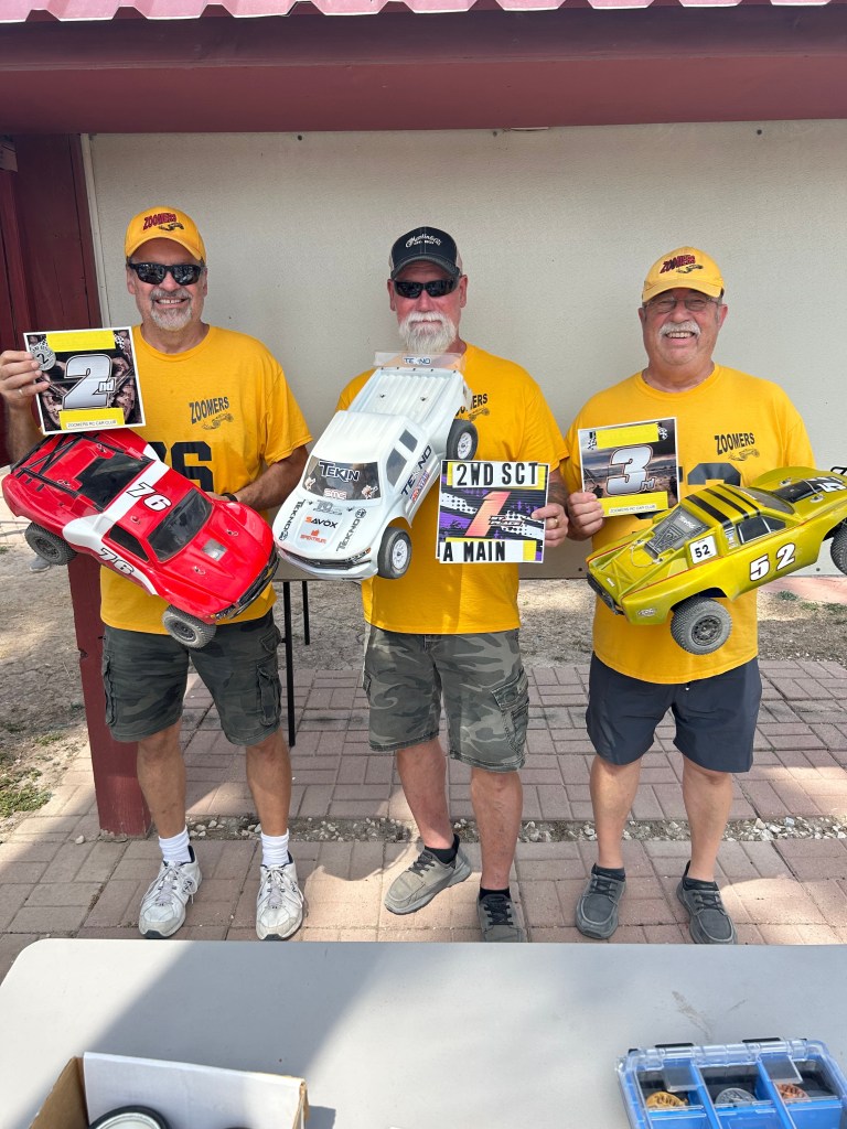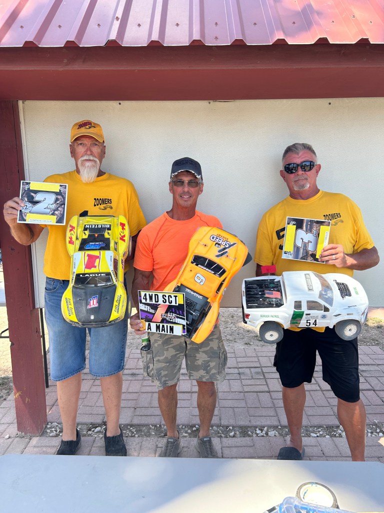 . Brown, 54 GaryIt was a hot day at the track, both in temperature and competition, with 24 drivers racing in the Mains. Ethan Corral emerged as the Sunday Tech Track “Trophy Dash” winner, triumphing over 10 other drivers. Congratulations, Ethan! Notably, car 76 was spotted parked on the other side of the fence—he must have really flown off the track.